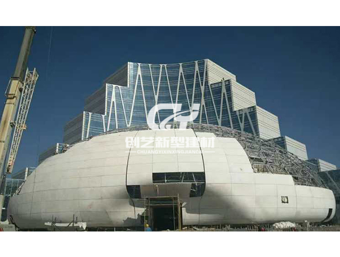 采用機械噴制加工,高溫養護成型,大型構件采用鋼骨架節點方式
